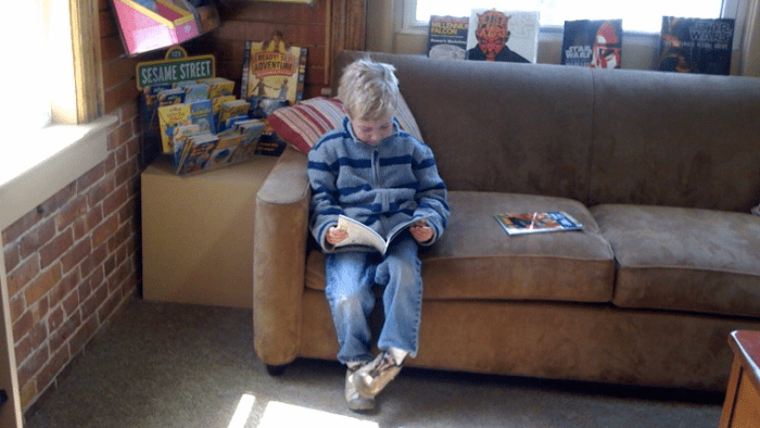 But just in the past few weeks, I’ve started to feel like there’s a corner being turned. John will suddenly spend time setting up and playing a card game on his own. He’ll spend time reading books in the morning or the afternoon. He created a “museum” using cards from a memory game last weekend and a complicated version of checkers that involves dinosaurs and Star Wars characters.