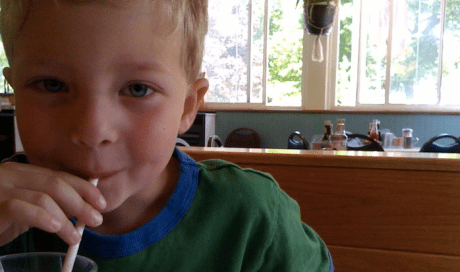 Lately, we’ve been spending at least two hours a week at a gym nearby with a warmer pool. I’m trying not to make a big deal of it, but we’re in the water as often as possible and mixing time for learning with time for fun. Plus weekly lessons. Plus, he’s spending time with his cousins in June. They’re like fish, and he wants to do what they do. As an added bonus, I’m offering milkshakes as reward for hard work and bravery (see picture above) which has helped. The apple doesn’t fall far from this tree, I guess.