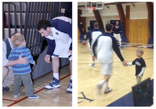 Ben graduated, and when John was three, we took him to the first home game of the season not knowing what he’d make of it. Would he be interested in Ben-free basketball? The answer: a resounding yes. Before the game started, a freshman named Jake came over and introduced himself. John was officially hooked.