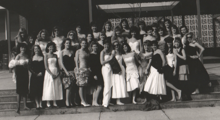 I can fill you in on all the details of the photo. It was a senior girls photo for Anchor, Civinettes and Vesta for the yearbook – the velvet covered 1990 one that you are listed as editor of.