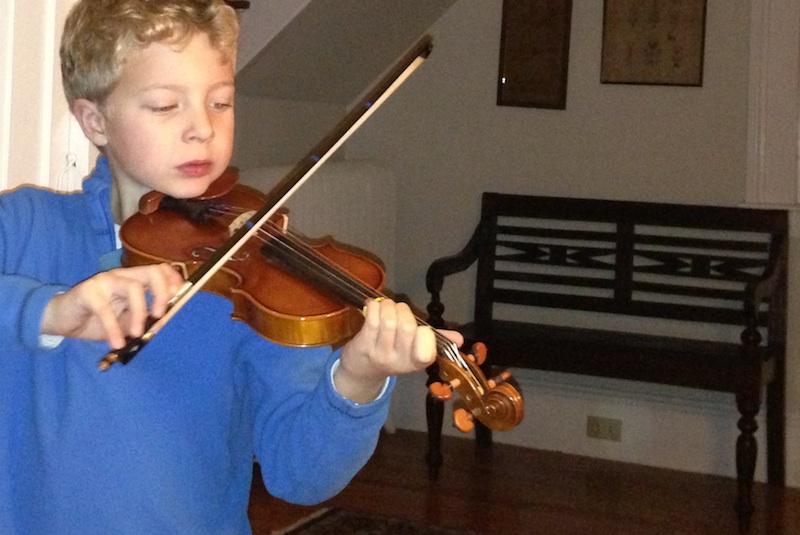 There are good days and bad days. Sometimes practice lasts for a painful five minutes and includes whining (from John), screeching sounds (from the violin), and the sound of loudly rolling eyeballs (from me). Other times practice lasts for about 30 minutes and is actually fun. For both of us. I can find no way of predicting or controlling what kind of day we’re going to have. Fortunately the good days outnumber the bad.