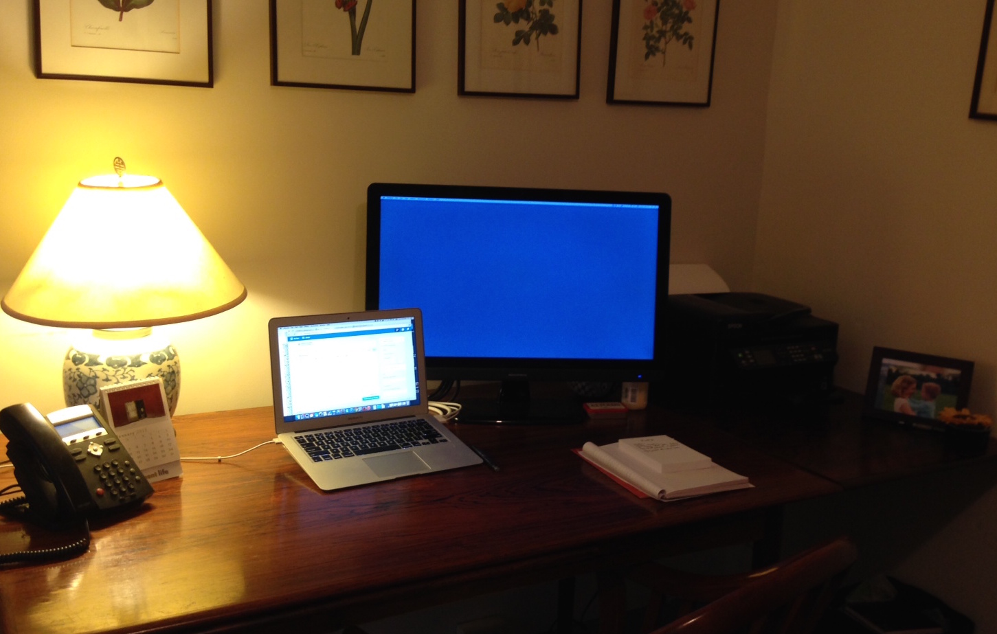This is certainly not the way to get good work done, and not a good example of effective telecommuting. I feel like I’m trying to get my job done while tied to a wild animal inside a closet.